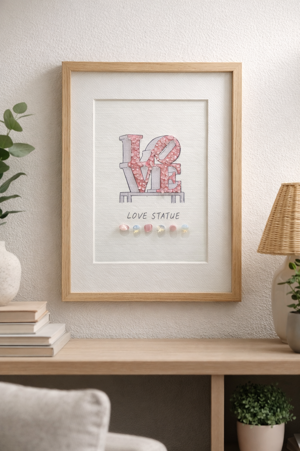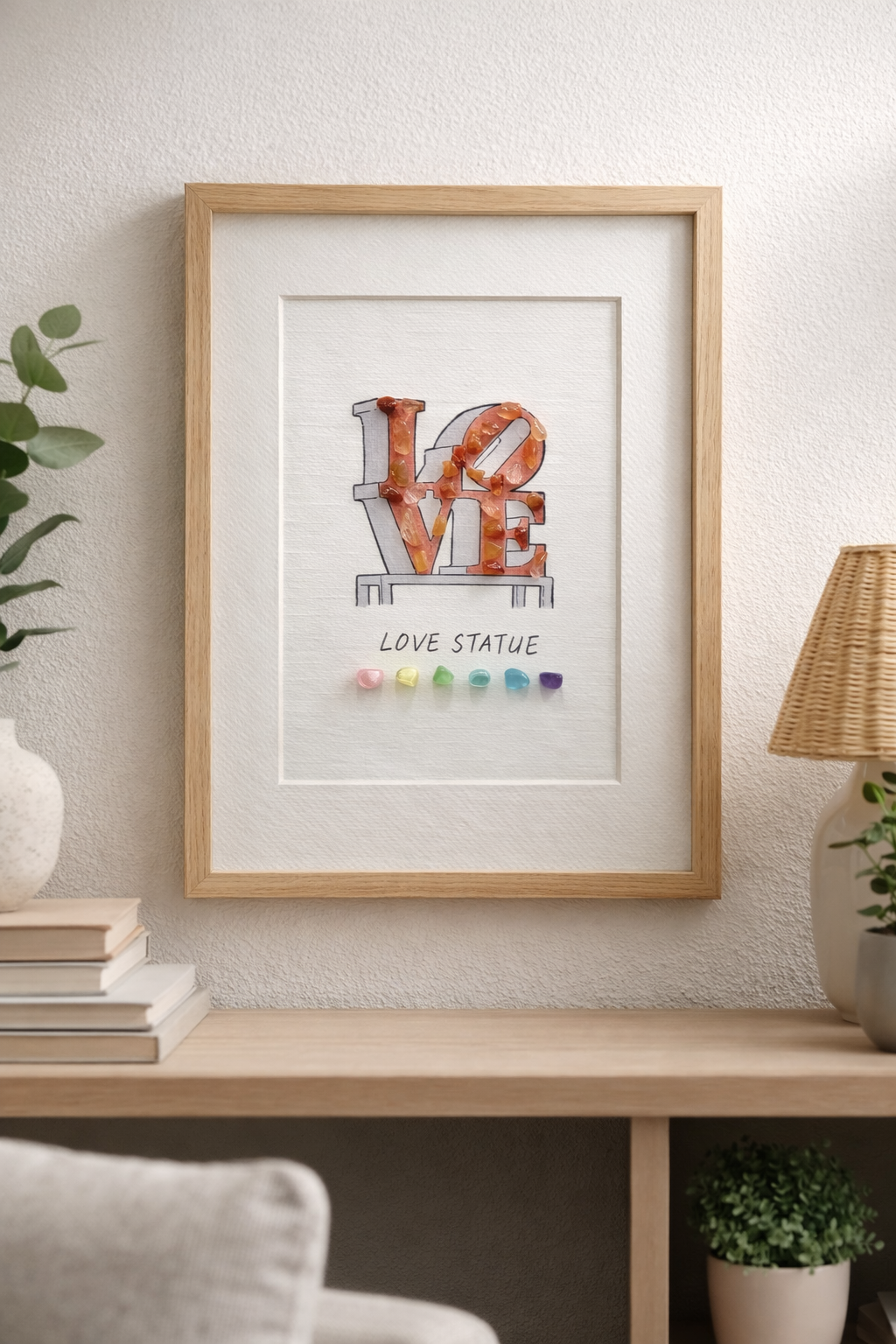 LOVE Statue: Robert Indiana's iconic sculpture reimagined with shimmering crystals. Philadelphia's most photographed landmark and symbol of the city's welcoming spirit. Made with Red Jasper.