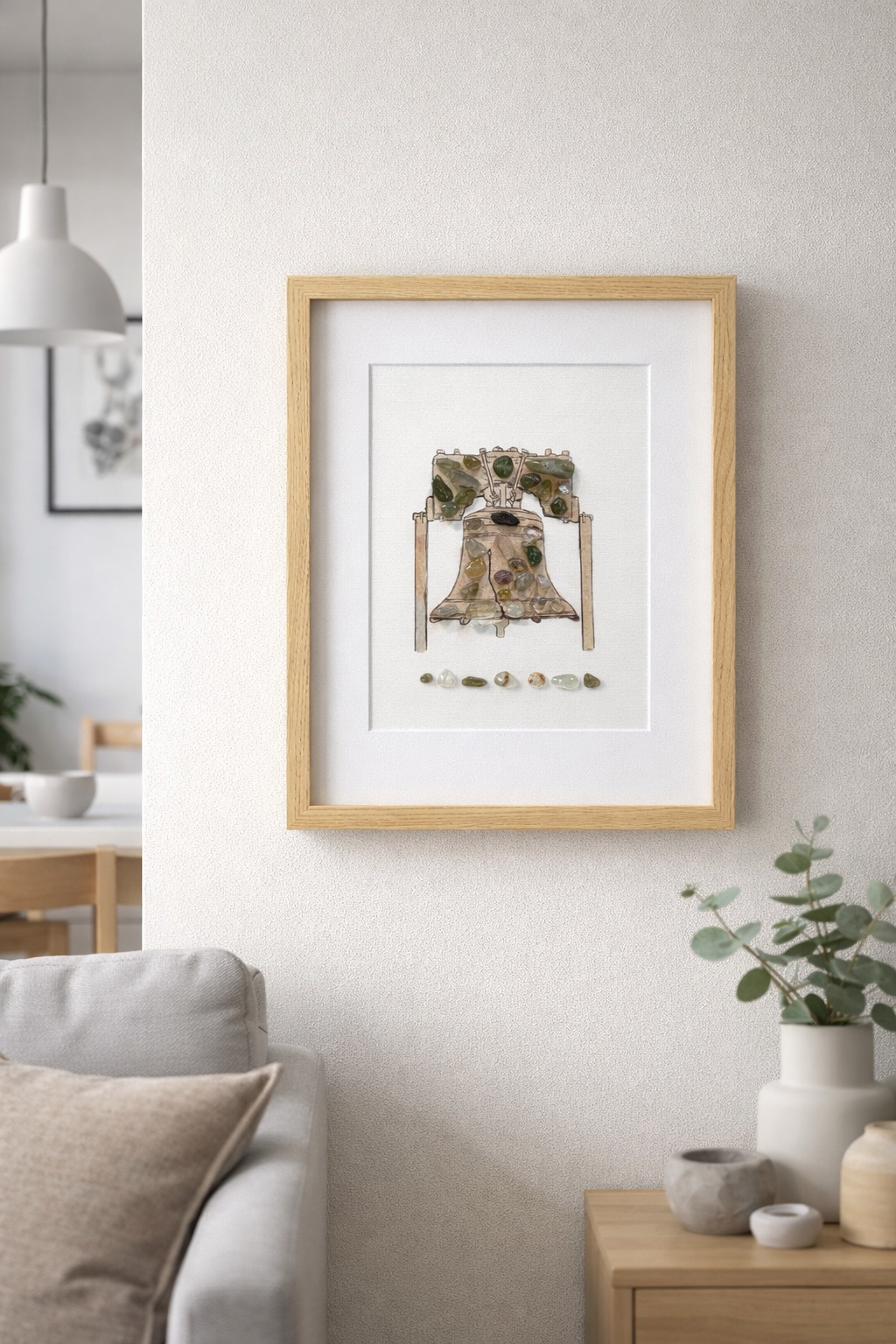Liberty Bell: An American icon with shimmering detail highlighting the famous crack. Perfect for history buffs and patriotic spaces. Made with Sardonyx.